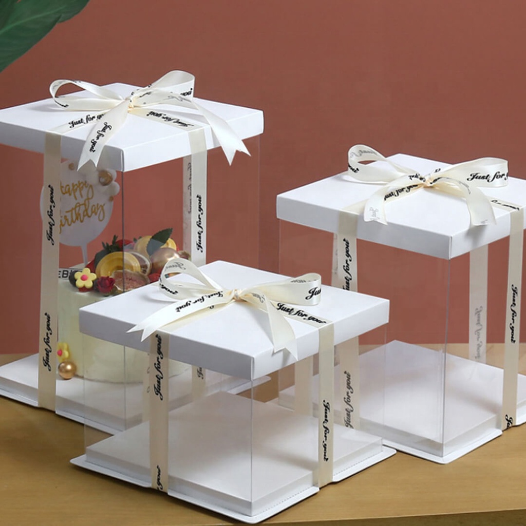 This transparent cake box offers a feeling of elegant to display cakes or gift and it is getting popular in celebrating events such as birthday party, .